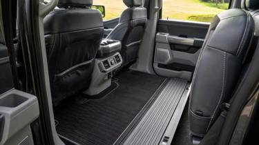 As the seat reclines, the back seat cushion is raised by up to 3.5-inches for lower back support, and the shoulder cushion is also extended to support the neck. How long before this option becomes standard on all pickup trucks?