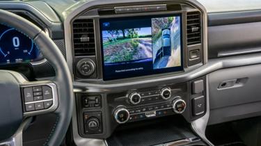 The 2021 Ford F-150 interior is equipped with a Bang & Olufsen stereo to enjoy tunes and podcasts. New on the F-150 are built-in audio vents in the headrests to deliver a surround sound experience. The 2021 F-150 features a 12-inch infotainment touch-screen capable of displaying two panes of information simultaneously. A simple swipe on the screen can change screens without using buttons or going back to the main menu.