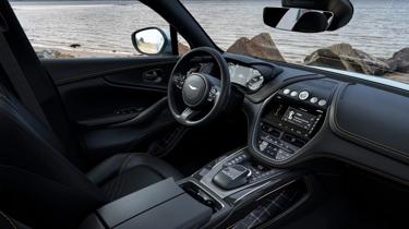 The Aston Martin DBX Bowmore Edition offers two leather interior color options featuring polished copper cup holders. The sill plaques displayed when you open the door are made from recycled copper from a Bowmore whisky still. The gloss black center console is detailed with hand-laid copper foil. Q by Aston Martin also includes a Bowmore tweed picnic blanket and leather hold-all with the vehicle.